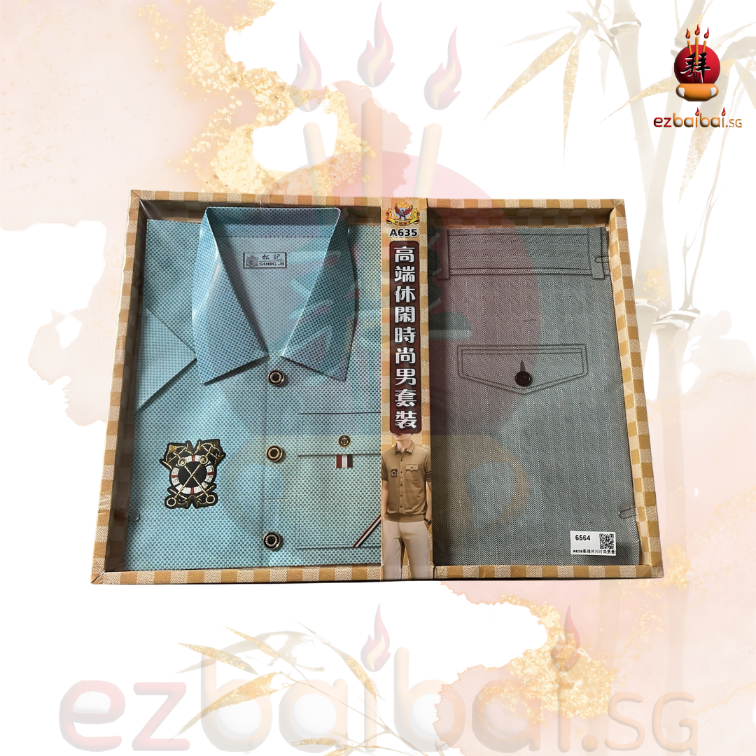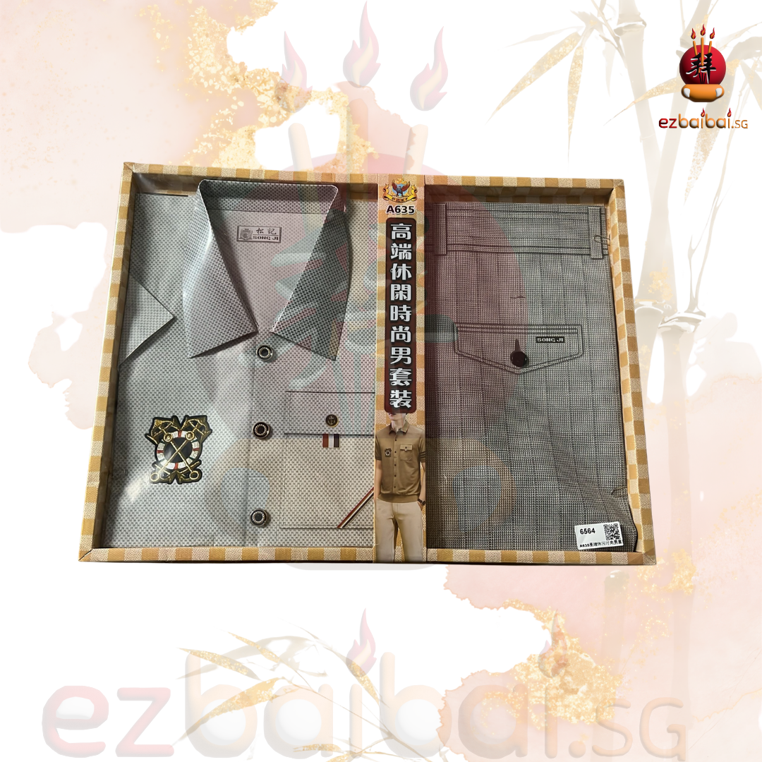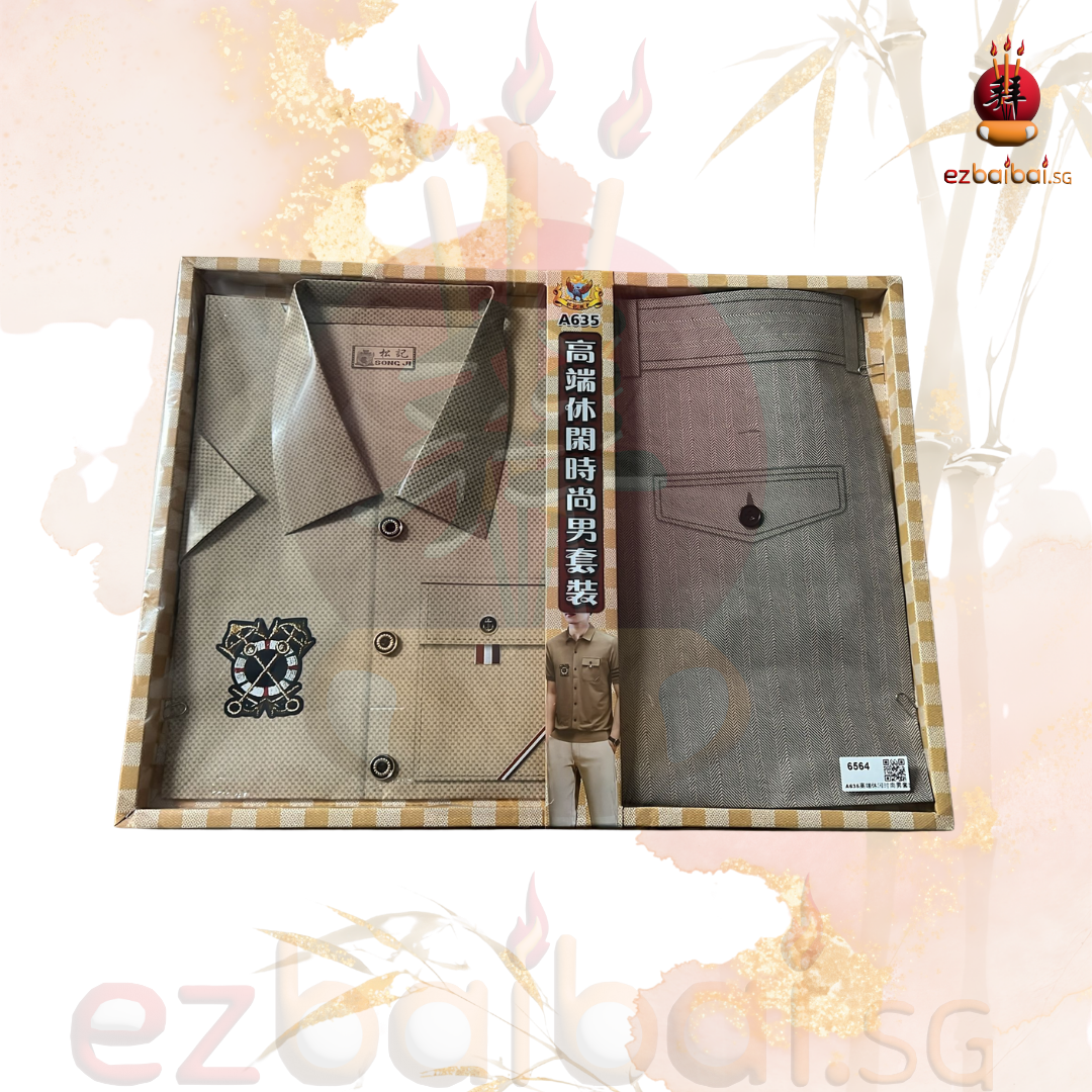 Male luxury polo and pants set is commonly used during traditional prayers and burning offerings.
